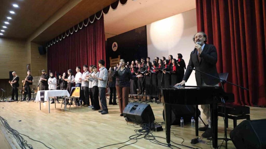 Eğitim Ağrı’da "Kim Var?" sanat etkinliği Ağrı İl Milli Eğitim Müdürlüğünün ev sahipliğinde düzenlenen “Kim Var?” sanat etkinliği kapsamında, AK Parti İstanbul Milletvekili ve sanatçı Yücel Arzen Hacıoğulları, Erol Parlak Güzel Sanatlar Lisesi öğrencileriyle birlikte sahne… Hakan Kaplan 5 Nisan 2026 Milli Eğitim Bakanlığı Ortaöğretim Genel Müdürlüğünün koordinasyonunda, Türkiye Yüzyılı Maarif Modeli’nde yer alan estetik duyarlılık, kültürel birikim ve değer temelli eğitim anlayışını desteklemek amacıyla hayata geçirilen proje kapsamında İbrahim Çeçen Üniversitesi Osmanlı Salonu’nda program düzenlendi. Etkinliğe Vali Önder Bozkurt ve eşi Betül Bozkurt, Cumhuriyet Başsavcısı Adem Çalış, Rektör Prof. Dr. İlhami Gülçin, İl Milli Eğitim Müdürü Hasan Kökrek, il protokolü, öğretmenler ve öğrenciler katıldı. Vali Bozkurt , beraberindeki heyetle program öncesinde Erol Parlak Güzel Sanatlar Lisesi öğrencilerinin hazırladığı resim sergisini gezerek çalışmalar hakkında bilgi aldı. Program, saygı duruşunda bulunulması ve İstiklal Marşı’nın okunmasıyla başladı. Programda konuşan İl Milli Eğitim Müdürü Hasan Kökrek, Türkiye Yüzyılı Maarif Modeli’nin önemine değinerek, sanatın bireyin ruh dünyasını zenginleştirdiğini ve toplumsal bağları güçlendirdiğini söyledi. Sanatın, insan ruhunun en güçlü anlatım biçimlerinden biri olduğunu ifade eden Kökrek, “Sanat, duyguları derinleştirir, düşünceyi zenginleştirir ve toplumsal bağları kuvvetlendirir. Eğitim ise bireyin karakterini, kimliğini ve geleceğini inşa eder. Eğitimin akılla kurduğu dengeyi estetik duyarlılık ve vicdan tamamlar. Bu iki alan bir araya geldiğinde daha bilinçli, daha üretken ve daha sorumluluk sahibi bir nesil yetişir” dedi. “Kim Var?” etkinliği kapsamında İstanbul Milletvekili Yücel Arzen Hacıoğulları’nı Ağrı’da misafir etmekten memnuniyet duyduklarını belirten Kökrek, Hacıoğulları’nın müzik alanındaki birikimi ve kültür hayatına sunduğu katkılarla sanat dünyasında önemli bir yere sahip olduğunu ifade etti. Öğrencilere de seslenen Kökrek, kültür ve sanatla beslenen gençliğin özgüveni yüksek, bilinçli ve sorumluluk sahibi bir toplumun temel dayanağı olduğunu vurgulayarak, öğrencilerin akademik başarılarının yanı sıra kültürel ve sanatsal gelişimlerinin de desteklendiğini dile getirdi. Konuşmaların ardından, koordinatörlüğünü Yücel Arzen Hacıoğulları’nın üstlendiği programda, Erol Parlak Güzel Sanatlar Lisesi öğrencilerinden oluşan koro çeşitli eserler seslendirdi. Hacıoğulları da sahnede seslendirdiği eserlere öğrenciler ve izleyiciler eşlik etti. Program kapsamında öğrenciler tarafından sahnelenen tiyatro gösterisi de katılımcılardan beğeni topladı. Etkinlik sonunda Vali Bozkurt tarafından Hacıoğulları’na tablo hediye edildi. Program, hatıra fotoğrafı çekimiyle sona erdi. Related Stories BŞEÜ mezunu genç sanatçıdan ulusal sergide büyük başarı Eğitim BŞEÜ mezunu genç sanatçıdan ulusal sergide büyük başarı 5 Nisan 2026 Selçuk Bayraktar: "Geleceğe yürüyebilmek için farklı olmanız gerekiyor" Eğitim Selçuk Bayraktar: "Geleceğe yürüyebilmek için farklı olmanız gerekiyor" 5 Nisan 2026 Fransızların 1922 petrol planı: Erzurum neden ilk hedef? Eğitim Fransızların 1922 petrol planı: Erzurum neden ilk hedef? 5 Nisan 2026