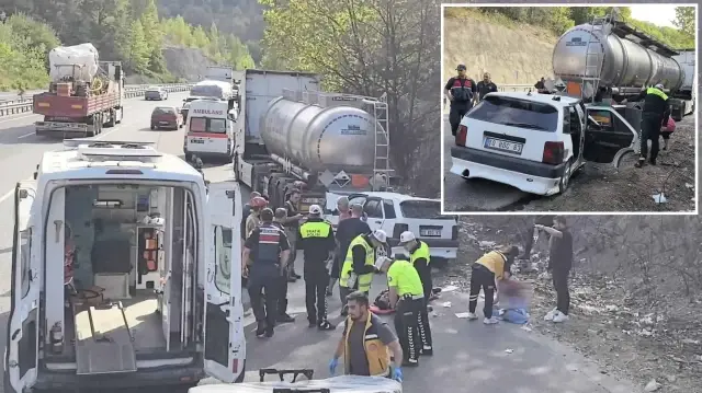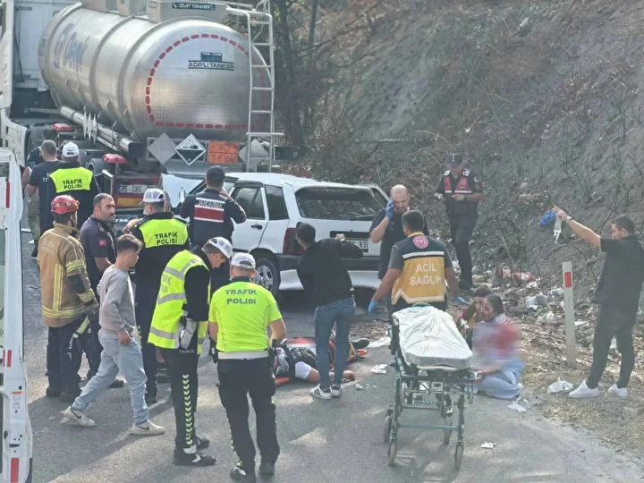 İnegöl’den Bozüyük istikametine seyir halinde olan Enes Y. (30) yönetimindeki 10 BDC 83 plakalı otomobil, yol kenarında park halindeki Mehmet G. (52) idaresindeki 35 BZP 594 plakalı asit yüklü tankere arkadan çarptı.