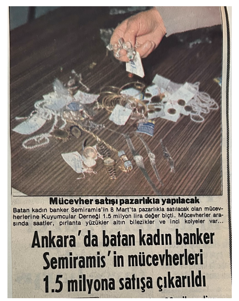 Kadın banker Semiramis Gürpınar “en ilginç bankerlerden birisiydi. Ev hanımlığından bankerliğe geçişte topladığı paralarla 1,5 milyon lira değerinde ziynet eşyası aldığı haberini 18 Şubat 1983’te yaptım.
