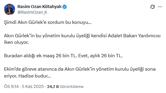 Gazeteci Rasim Ozan Kütahyalı ise Akın Gürlek ile konuştuğunu söyleyip, şunları yazdı: