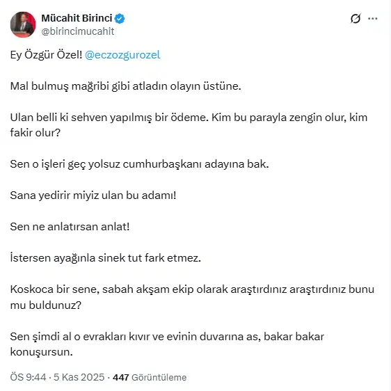 Özgür Özel’in ortaya çıkardığı bir başka skandalın ardından AKP’den ihraç edilen Mücahit Birinci de ödemelerin ‘sehven’ olduğunu savundu: